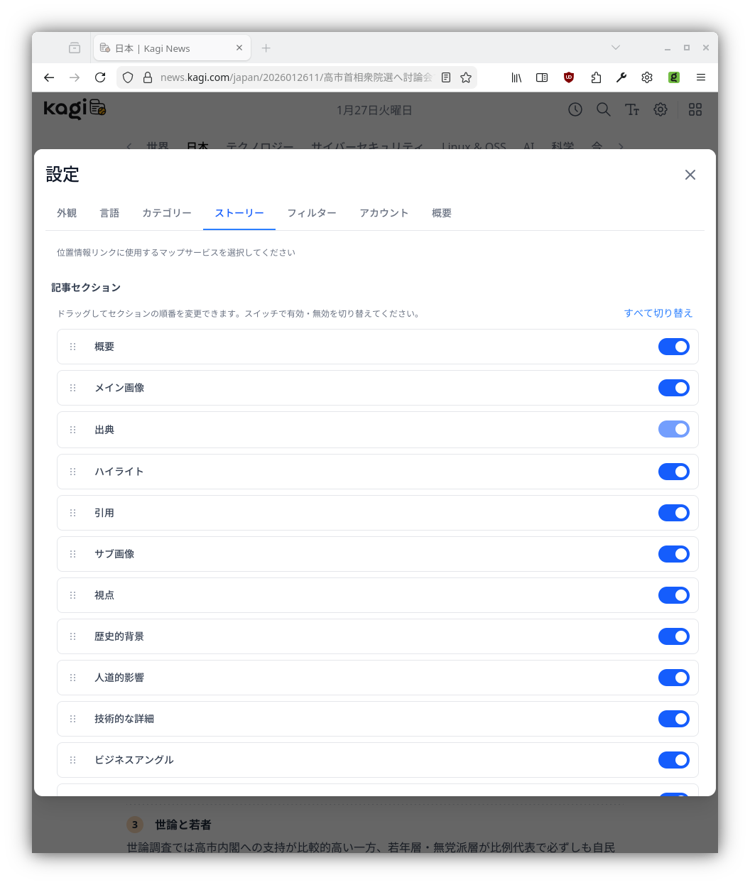 というわけで,前から気になっていた Kagi News で遊んでみることにした。
