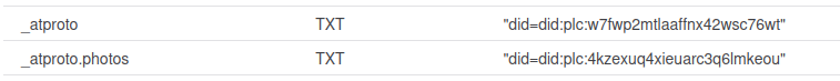 _atproto レコードは baldanders.info ドメインに対応し _atproto.photos レコードは photos.baldanders.info ドメインに対応している。