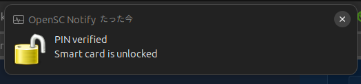 “Please enter PIN” には署名用パスワードを入力する2。 正しく入力すると以下のポップアップが出る。