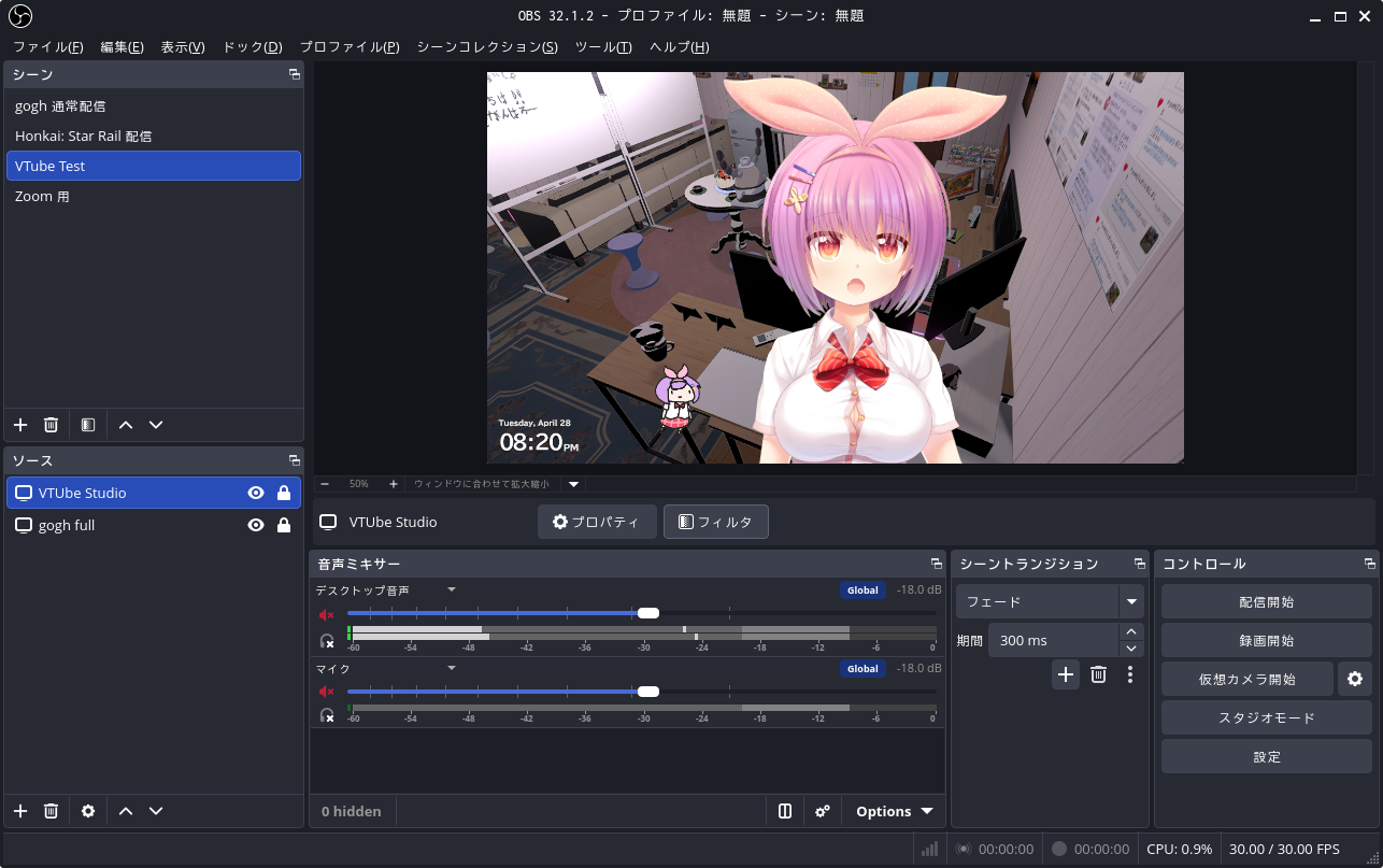 前回は Web カメラからの映像をゲーム画面と合成して Zoom に出力するところまでやった。 こうなると次は VTuber だよね。